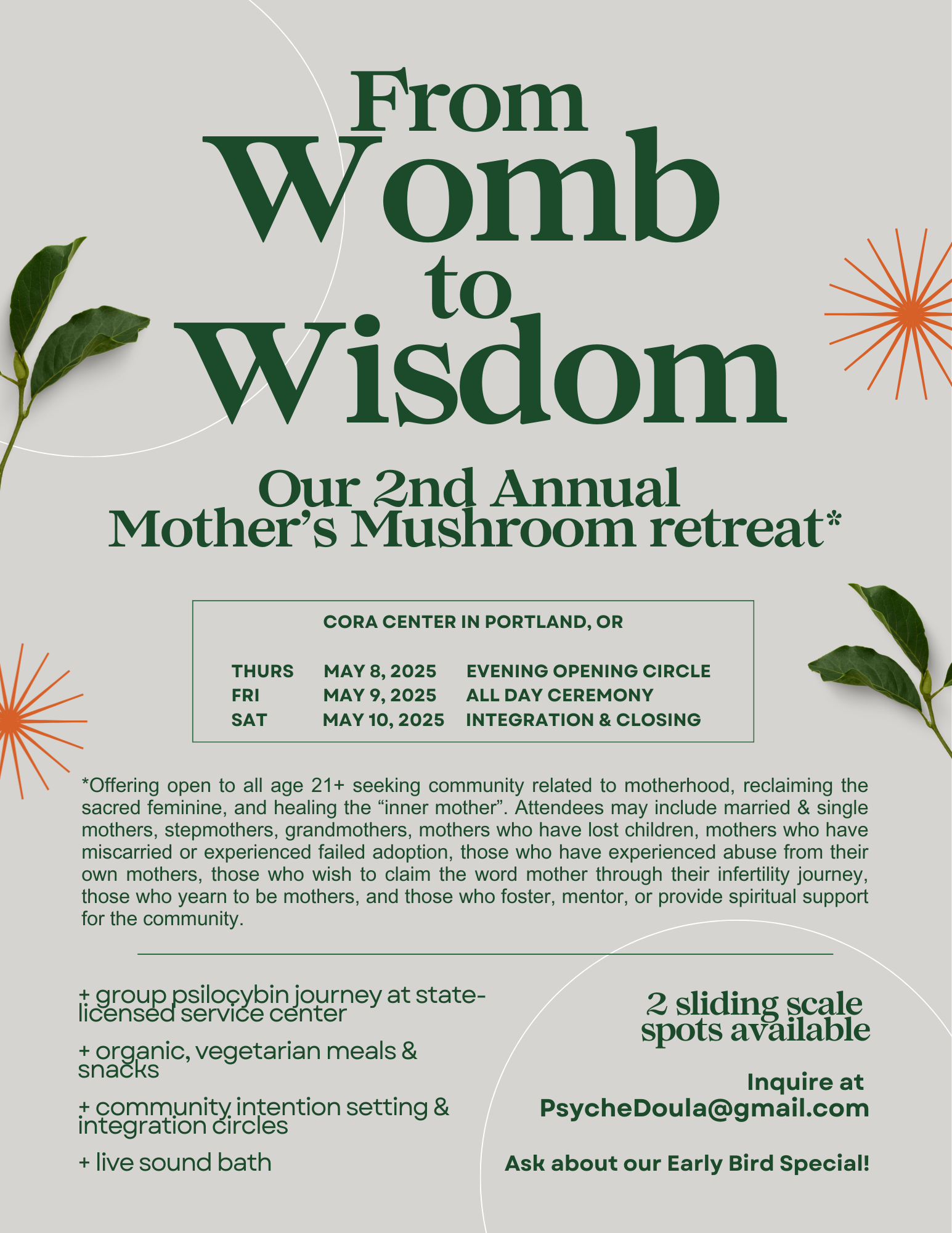 Our specialized groups and retreats are created to foster connection, healing, and deeper meaning-making. Whether you're coming together around a shared identity, intention, or life experience, these spaces offer a safe and supportive container to explore your inner world in community. Rooted in presence and care, each gathering invites vulnerability, shared insight, and the opportunity to integrate your psychedelic experiences in a way that feels grounded and held.